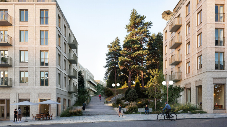 Projektet omvandlar en idag oanvänd plats till ett modernt, levande, tryggt och välkomnande kvarter. Husens arkitektoniska kvaliteter harmoniserar med omkringliggande bebyggelse och naturmark.